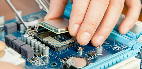 Сотрудник сервис центра проводит работу: заменяет проблемную часть работоспособной фирменной частью